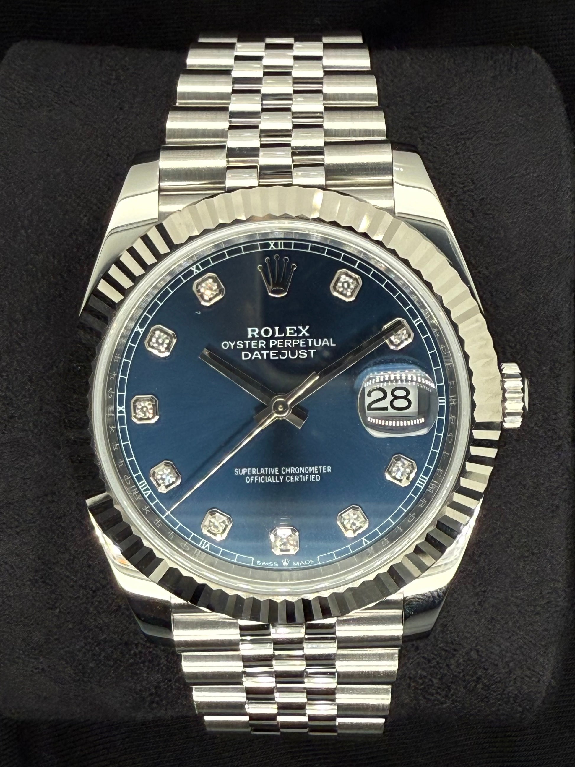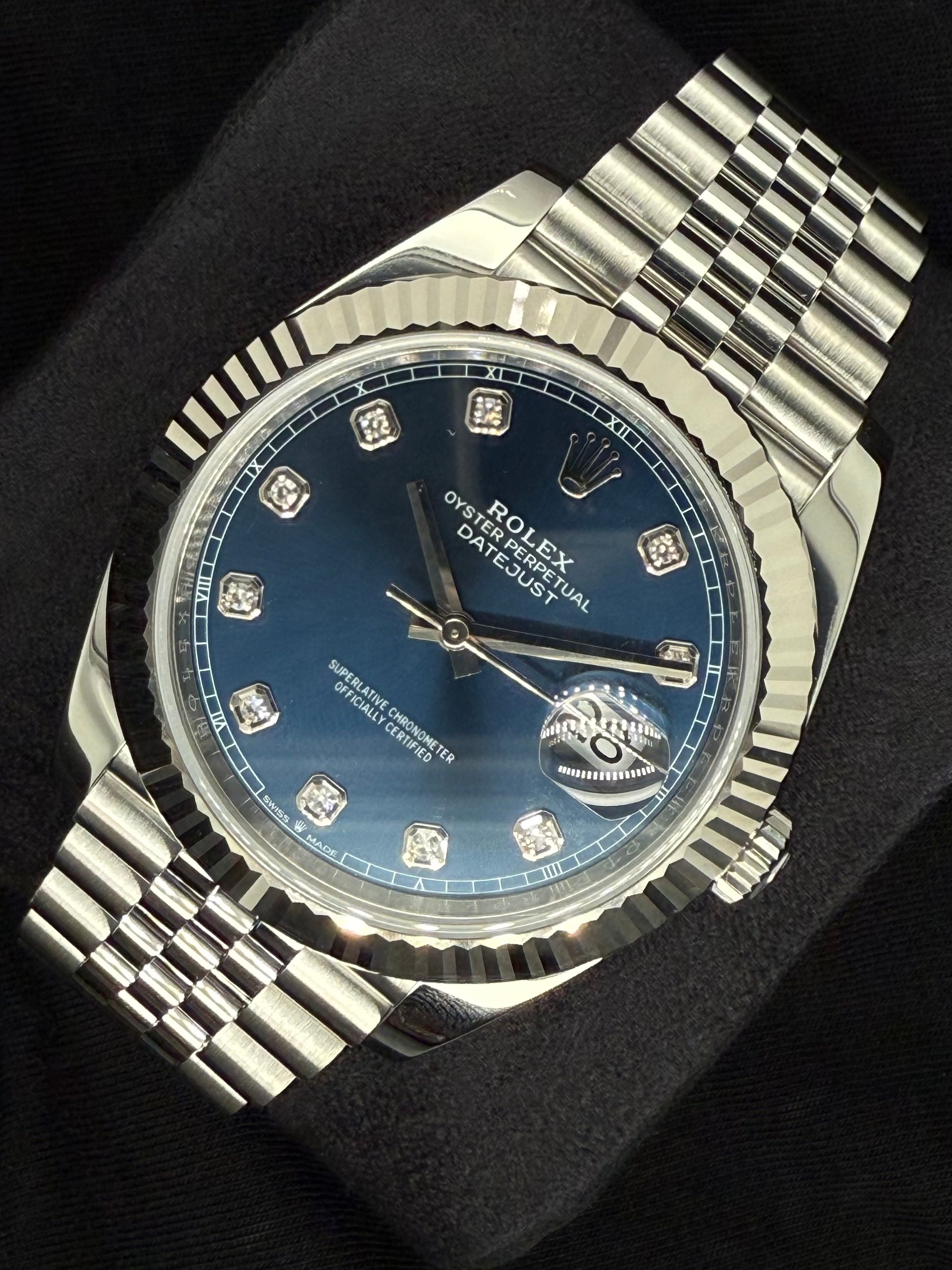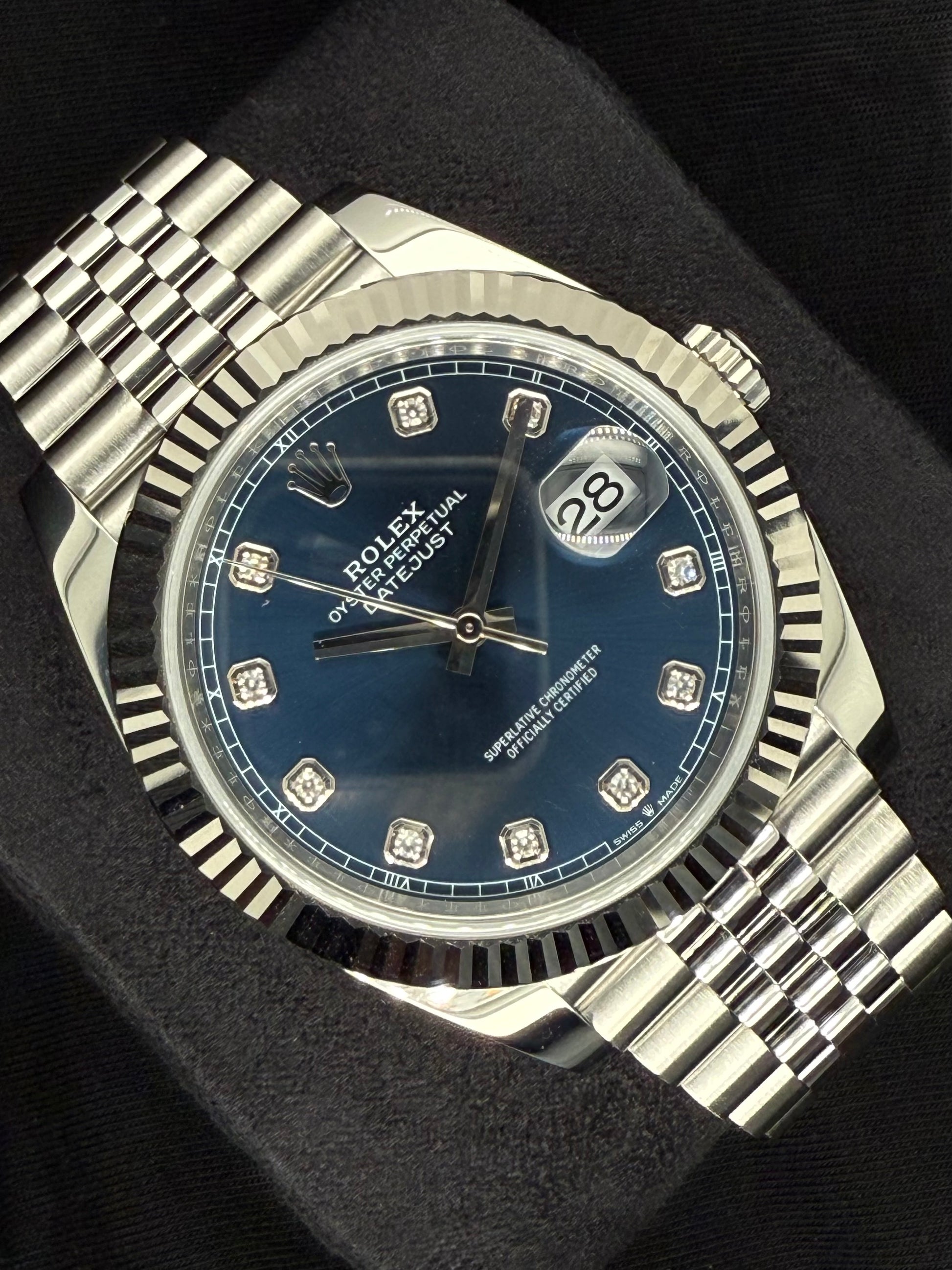 Rolex Datejust 41 Blue with Diamonds Dial Fluted Bezel Steel Jubilee 126334 | 2021 | 41mm