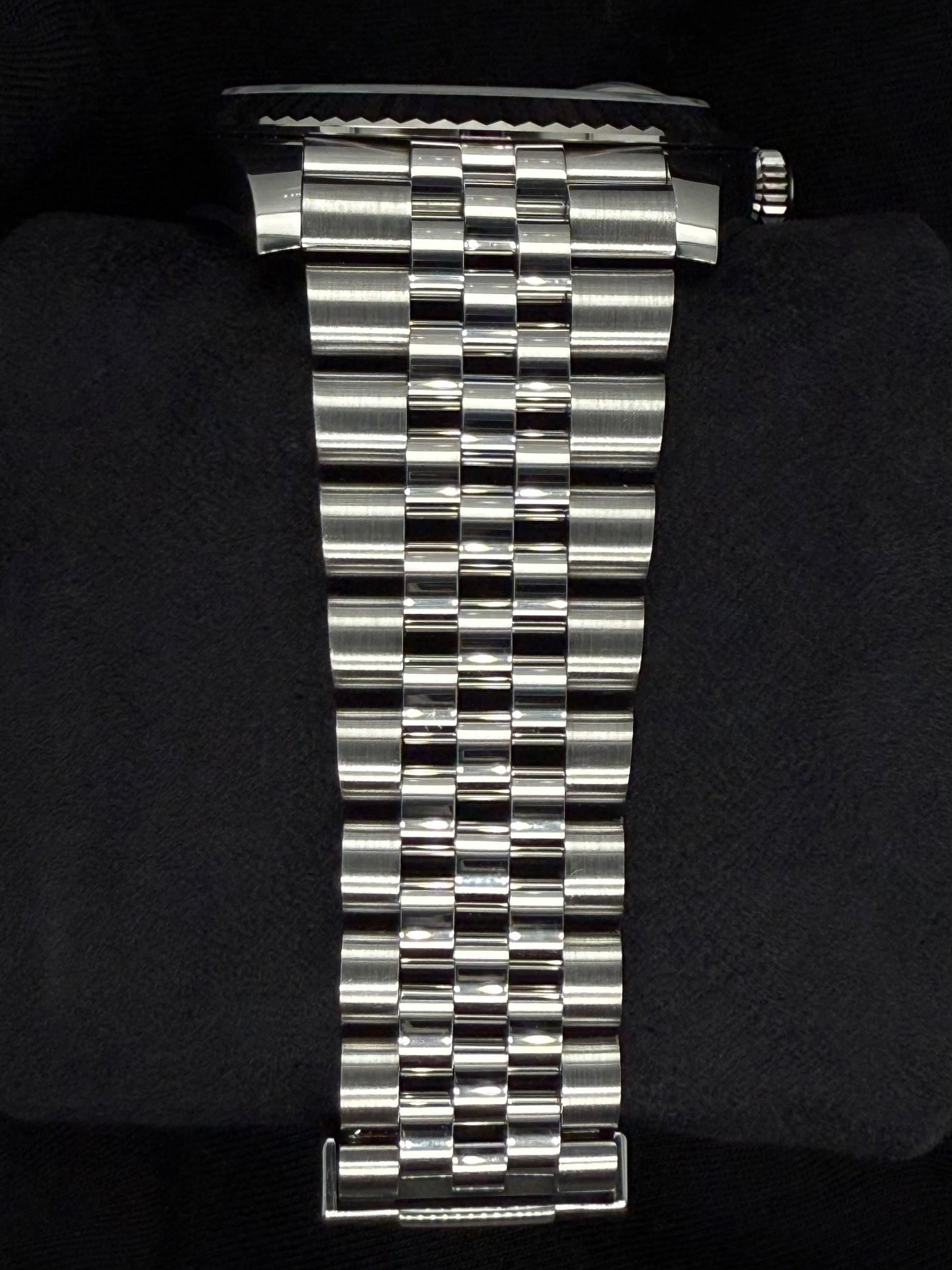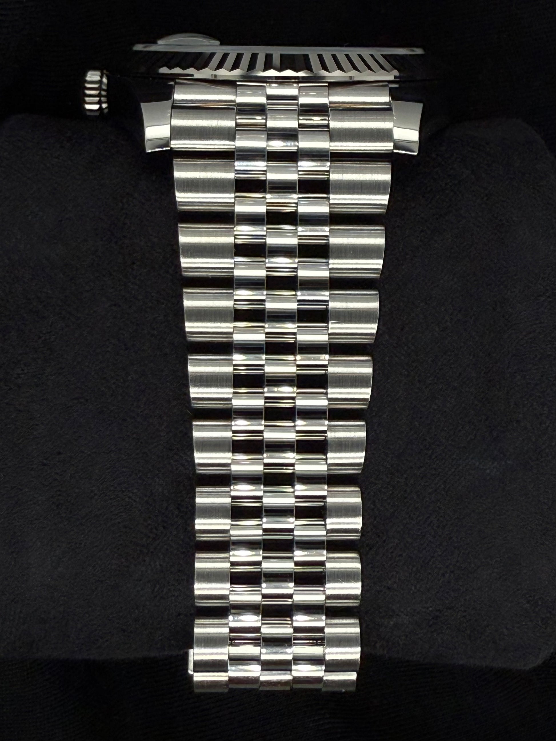 Choose from two bracelet options: the sporty, durable Oyster bracelet or the elegant, five-piece Jubilee bracelet, both equipped with the secure Oysterlock clasp. With water resistance up to 100 metres, the Datejust 41 is both practical and stylish, perfect for any occasion.