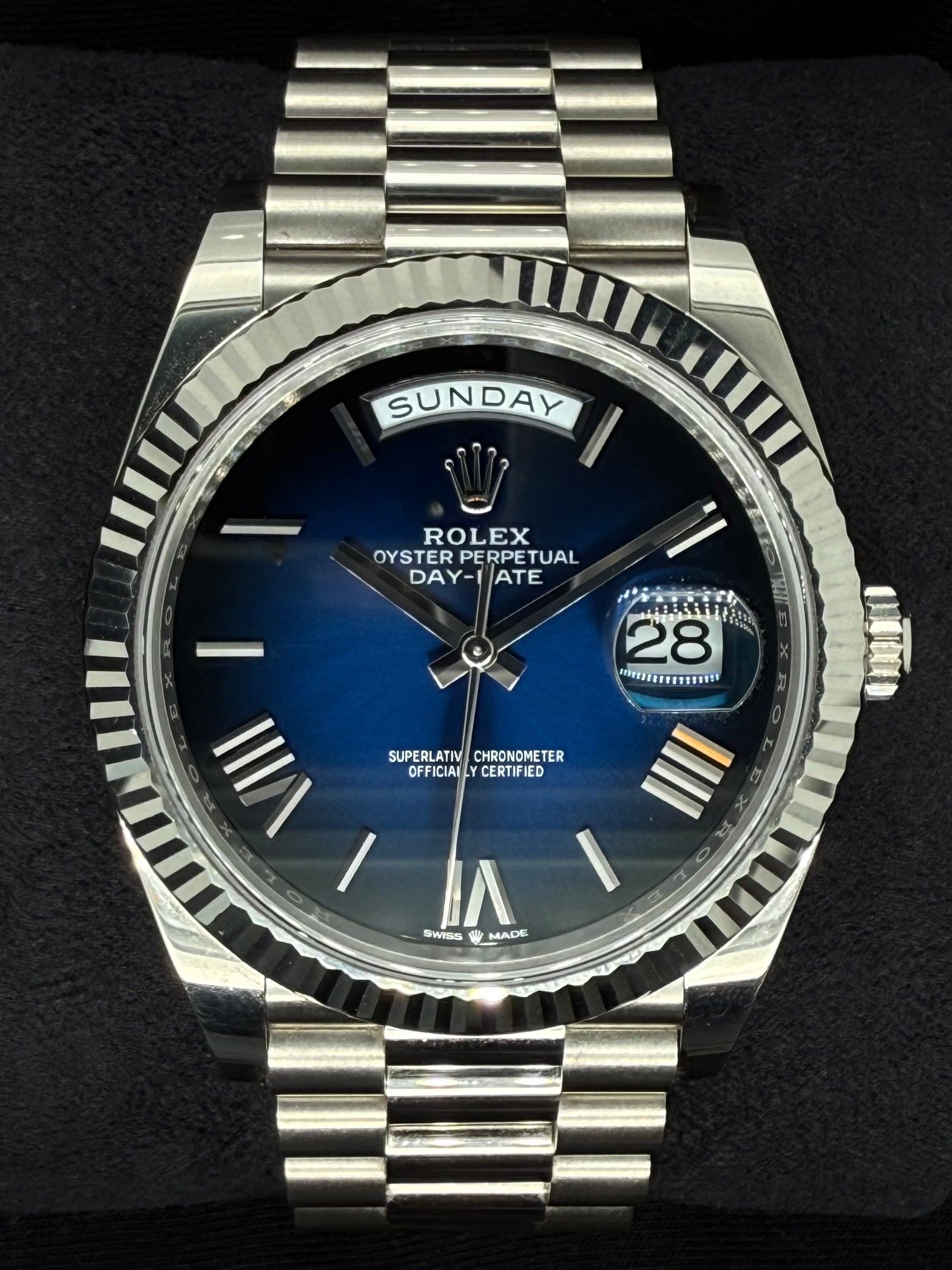 Rolex Day-Date 40 Ombré Blue Dial White Gold 228239 | 2025 | 40mm