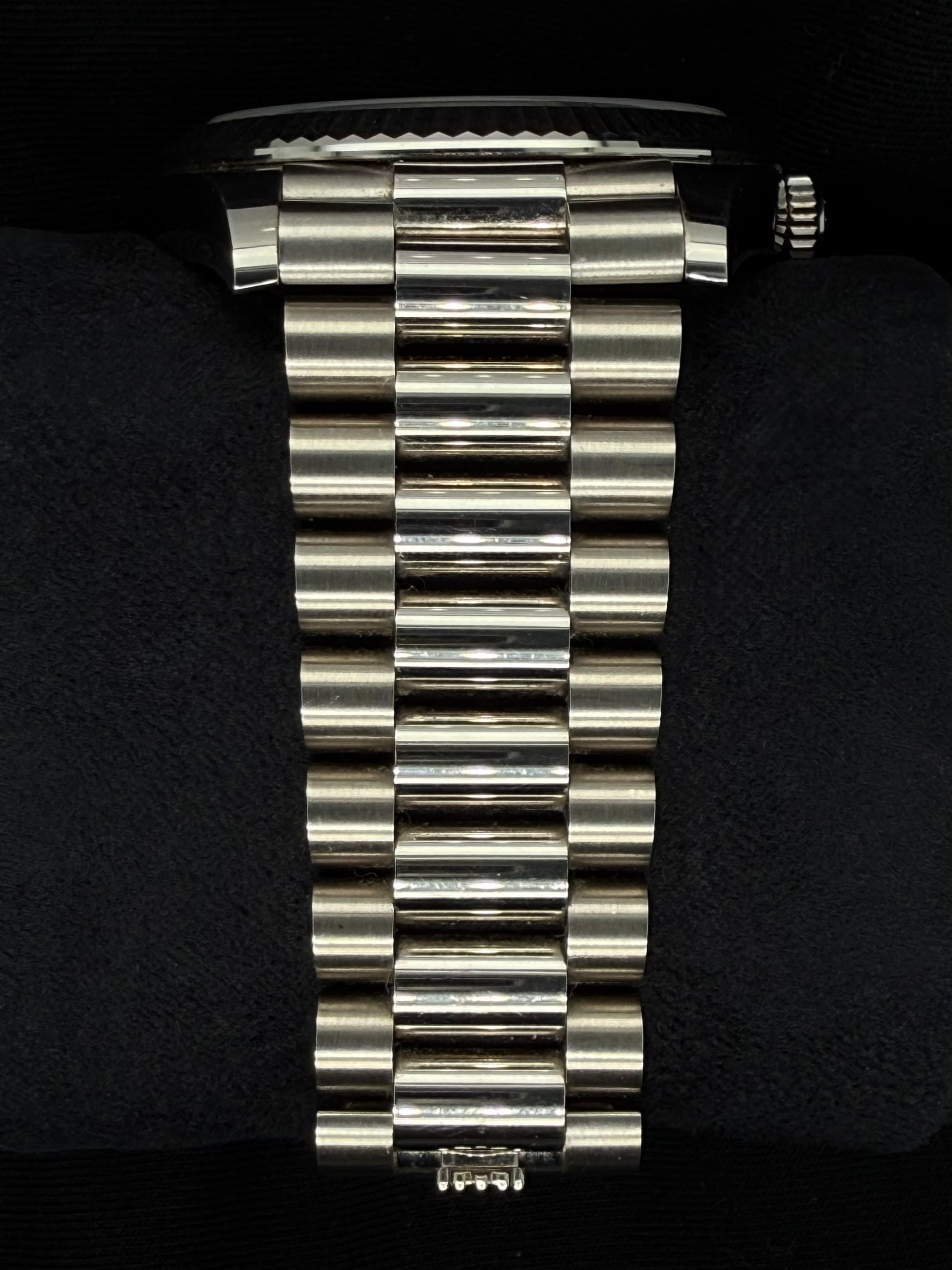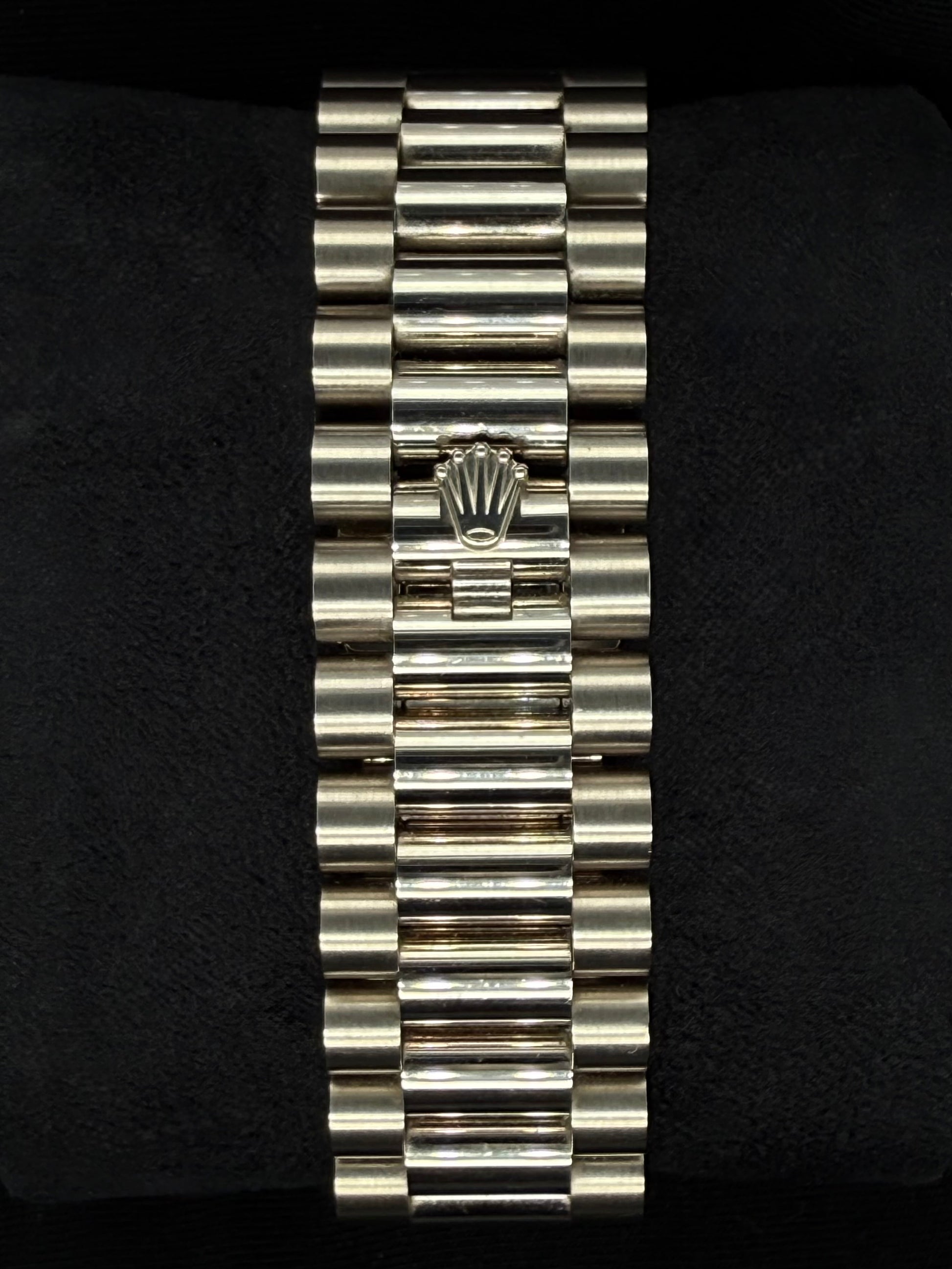 Fitted with the iconic President bracelet, crafted from three-piece links, the Day-Date offers unparalleled comfort and a secure fit, while the Oysterlock clasp ensures durability. With water resistance up to 100 metres, this timepiece is as practical as it is beautiful.