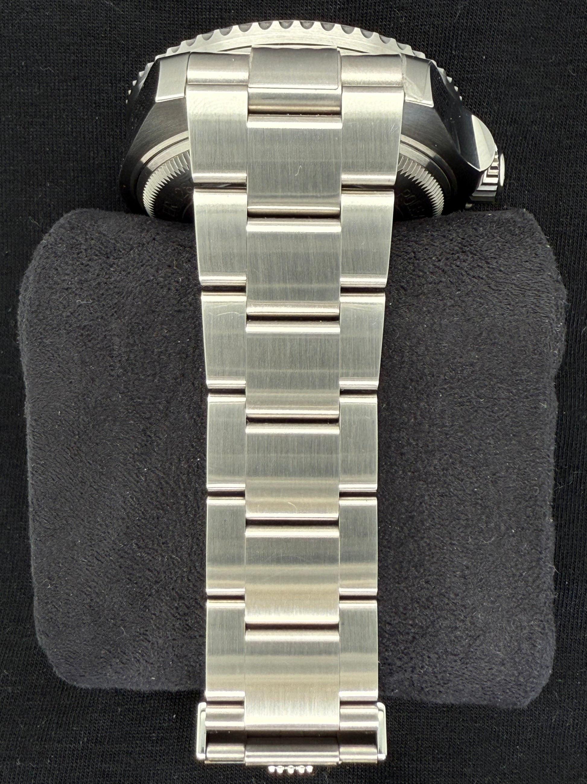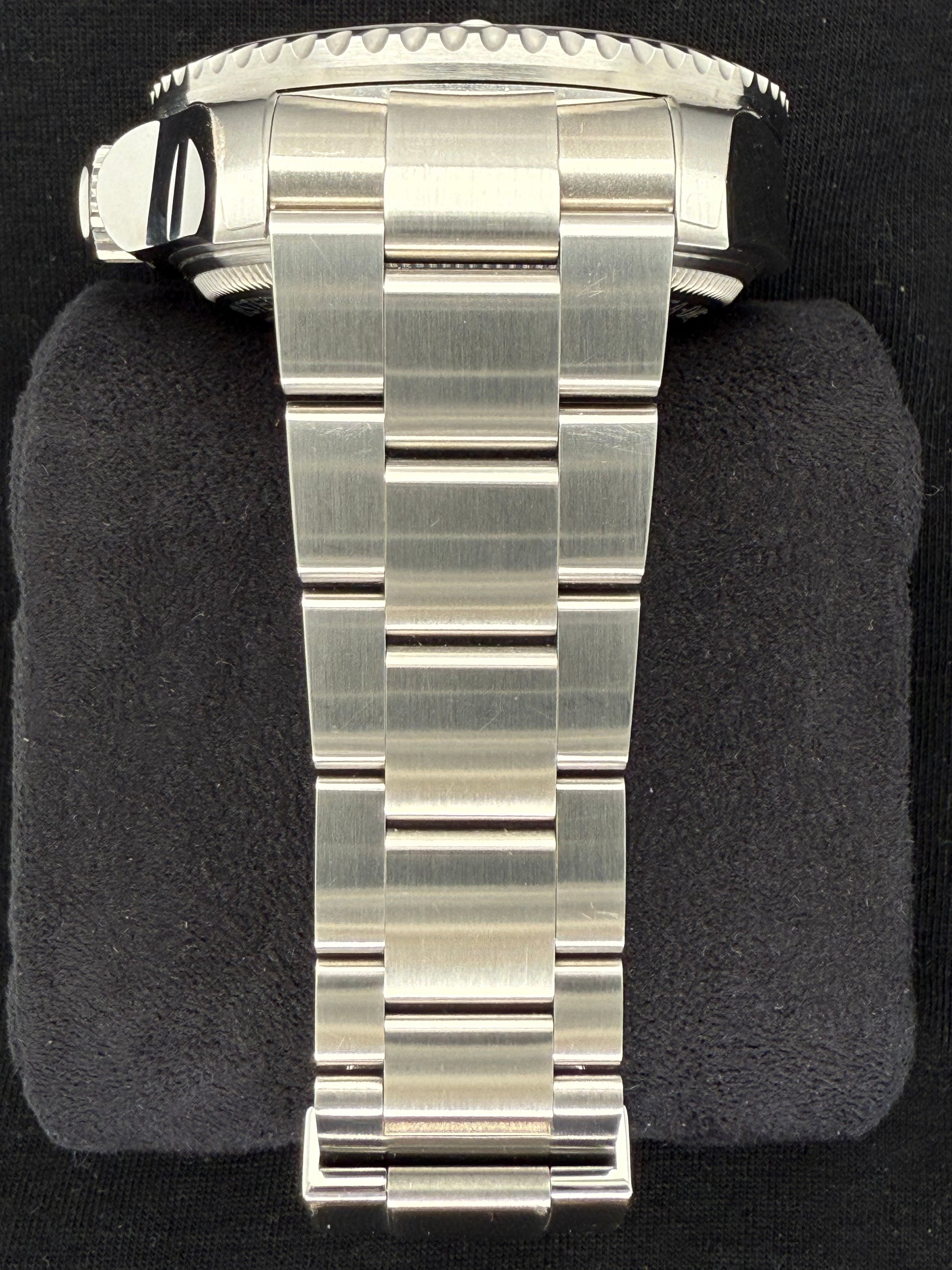 At the heart of the Rolex Sea-Dweller is the Rolex Calibre 3235 movement, offering 70 hours of power reserve and unparalleled accuracy. The Oyster bracelet, fitted with a Glidelock extension system and Fliplock extension link, ensures a secure fit over a wetsuit or formal attire, making this Rolex waterproof watch as versatile as it is functional. The Cyclops lens over the date window enhances legibility, a signature feature of Rolex’s professional timepieces.
